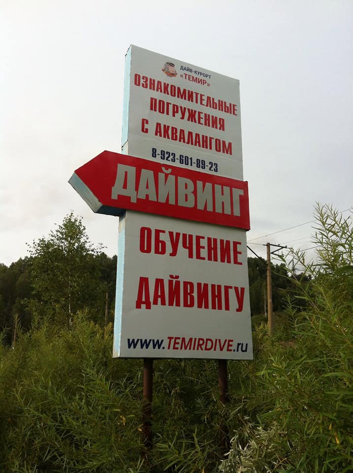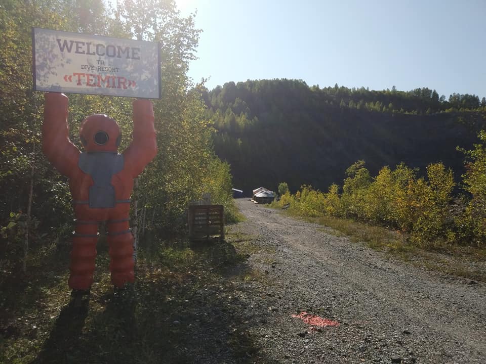 Через 500 метров после таблички «Темир-Тау», с левой стороны дороги увидите стрелу с надписью «Дайвинг» (красными буквами, указывает направо), поверните направо на грунтовую дорогу (далее все цифры даны от поворота, то есть вся дорога составит 7 км),