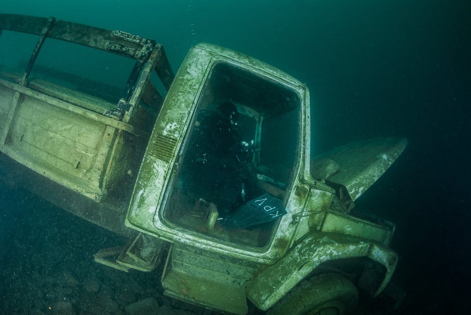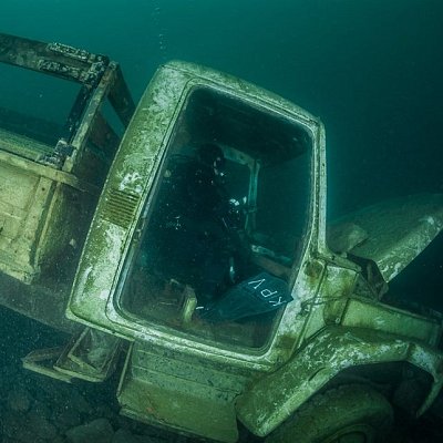 При погружении движение происходит по широкой подводной дороге, где много растительности, травы и кустарников, в которых живут подводные обитатели, стаи мелких рыбок и щуки. Можно доплыть до подводного офиса или порулить в затопленном грузовике. Идеально подходит для проведения ознакомительных погружений.
